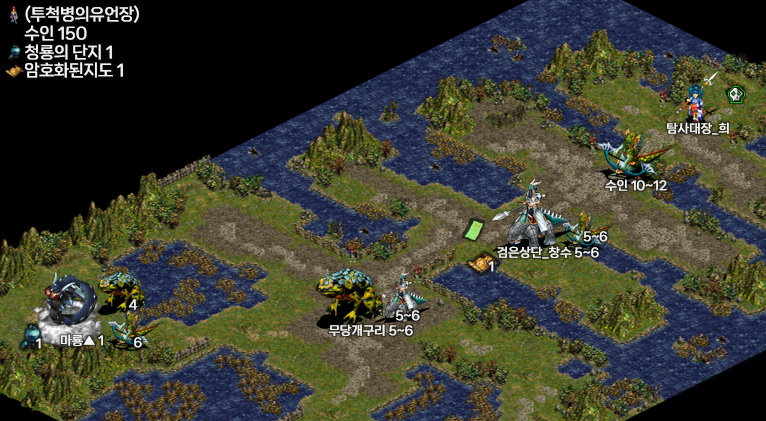 청룡의 단지를 얻었다면 중앙에 있는 검은상단_창수를 잡으면서 암호화된지도를 노리고, 같이 나오는 수인도 잡습니다