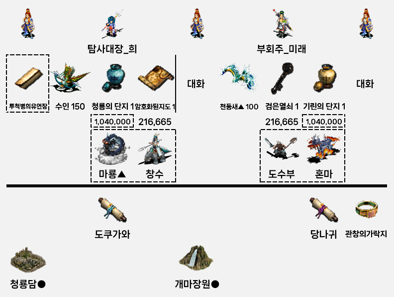 나머지 북해빙굴, 청룡담, 개마장원에는 전용 NPC가 있습니다