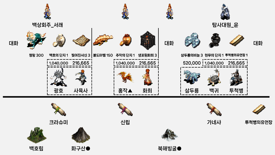 [거상 퀘스트] 신수와 챠우 - 백호림 | 화구산 | 북해빙굴 | 청룡담 | 개마장원 | 검은상단 주둔지